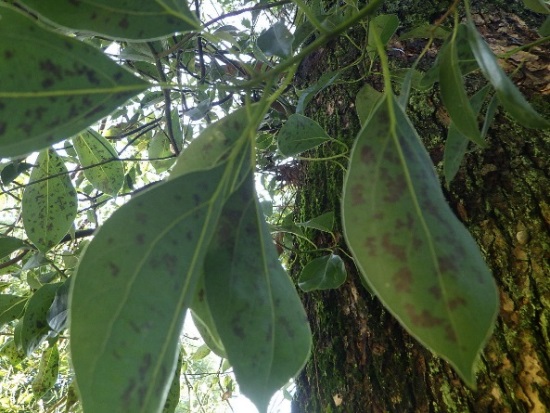 葉の表裏の吸収痕や種子、青軸に黒班ができ、そこから炭疸菌を検出したとの報告もあります。激しい落葉(7月と11月ころ)と黒班化は炭疸菌の特徴で、目視できる鑑定方法です。この炭疸菌の殺菌剤散布はスルーしても大きな問題はないと考えていますが・・・。